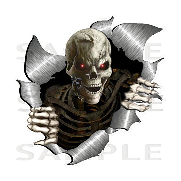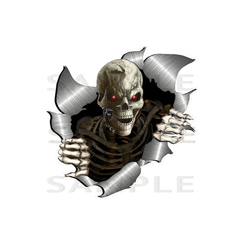 xlarge size Single Metal Rip Open Torn Skeleton Skull Sticker