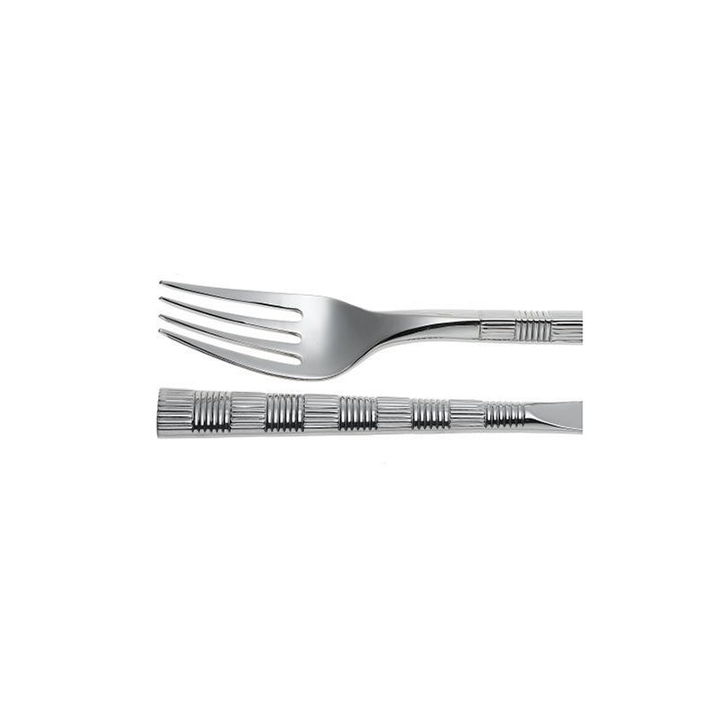 A blend of strong and tailored lines, Mitre flatware from Yamazaki makes a confident and vigorous statement at the table. Combining strong silhouettes and an angled axis, the pieces feature clearly defined cross-hatching, which is called into relief by a gleaming mirror finish. A tapered transition from the working end to the handle completes the design. Crafted from 18/8 stainless steel for durability and luster, Mitre is a full collection suitable for intimate meals or large-scale entertaining, and its design is notably compatible with modern homes.
