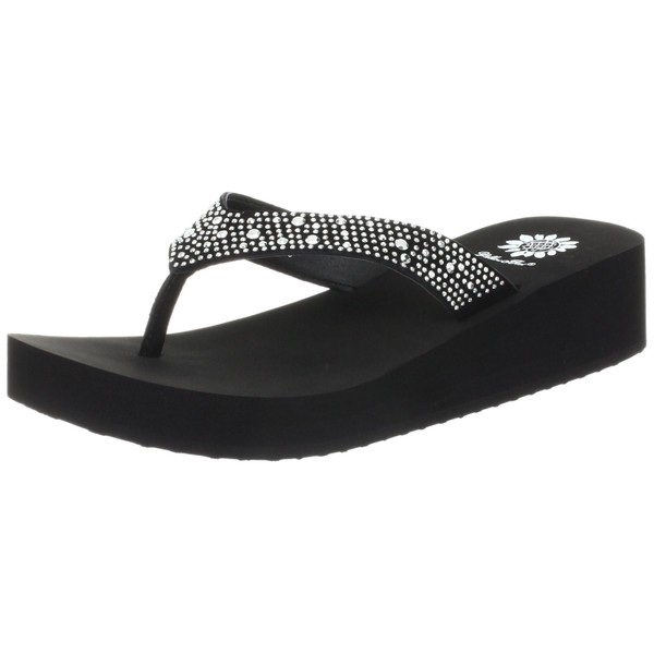 Yellow Box womens Africa Wedge Flip Flop, Black, 7.5 US