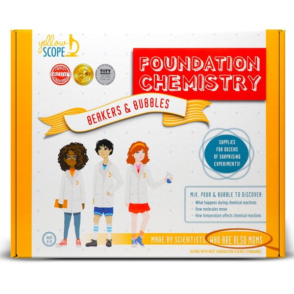 Yellow Scope Chemistry Kit, Science Experiment for Girls & Boys, STEM Activities for Kids Ages 8-12, Beakers & Bubbles Foundation Chem Set