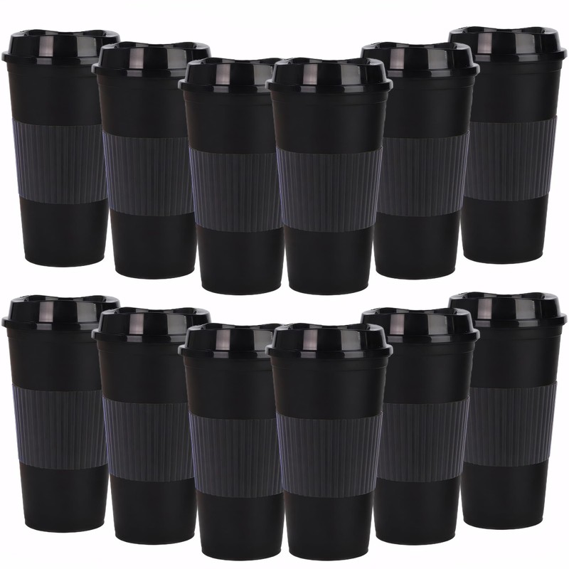 Yisituo 16oz Plastic Coffee Cup (12, Black)