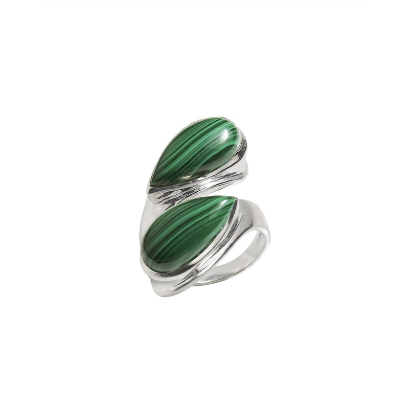 YoTreasure Malachite Solid 925 Sterling Silver Bypass Ring Jewelry