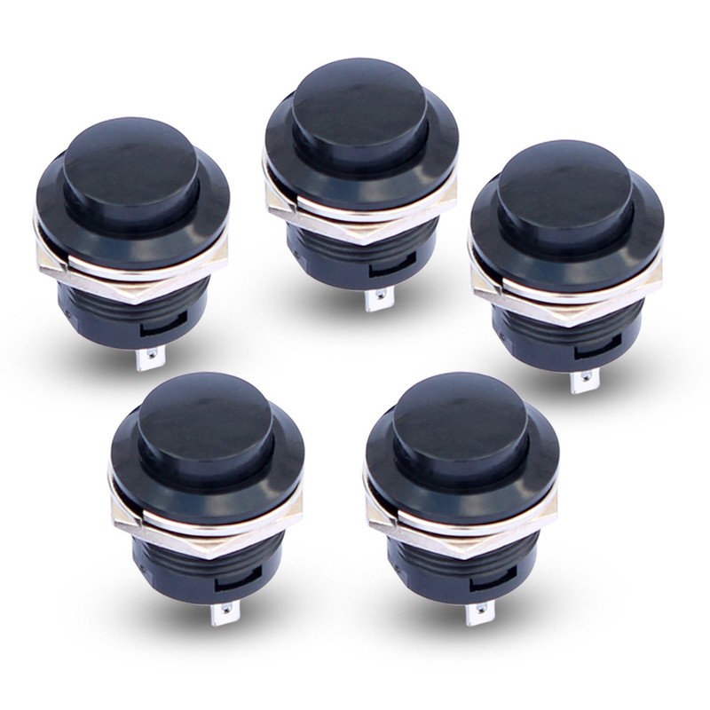 Ytian 5 Pcs Round Cap Momentary Push Button Switch,AC 6A/125V 3A/250V Black