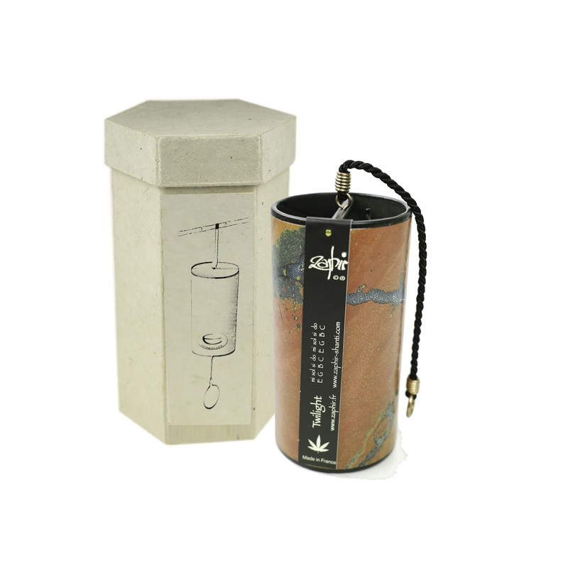 Hergestellt werden sie seit über 25 Jahren in aufwendiger Präzisionsarbeit in einer Manufaktur in den Pyrenäen Frankreichs. Jedes Klangspiel ist ein Unikat und das Ergebnis sorgfältiger Handwerkskunst. Im Inneren des schön gestalteten Resonanzkörpers ist eine Metallplatte eingearbeitet, auf der 8 präzise gestimmte Klangstäbe in einem Kreis senkrecht aufgelötet sind. Kommt das Klangspiel in Schwingung, berührt ein Plättchen die Metallstäbe und es erklingt die verzaubernde Melodie.