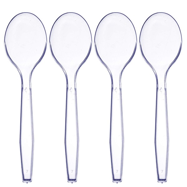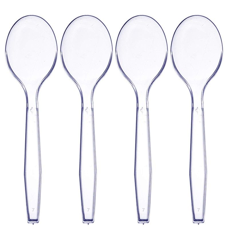 • 50 Pack - ZEML Clear Plastic Spoons Convenient sized box of 50 party disposable spoons prepares you with the perfect amount for your celebration meal without running out mid-event, allowing you to enjoy your party peacefully with enough spoons and no stress.