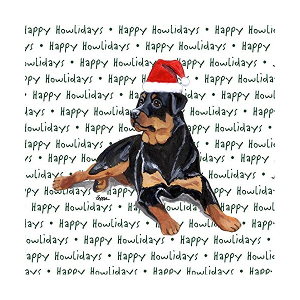 This beautiful set of Rottweiler dog coasters is the perfect Christmas gift this holiday season! The set includes 4 water-absorbent coasters to help protect your tabletops. Made in the USA, the artist's detailed dog breed designs are paired with a festive holiday background. These high quality dog coasters will make a beautiful addition to your living room or any dog lover's home! Happy Howlidays!