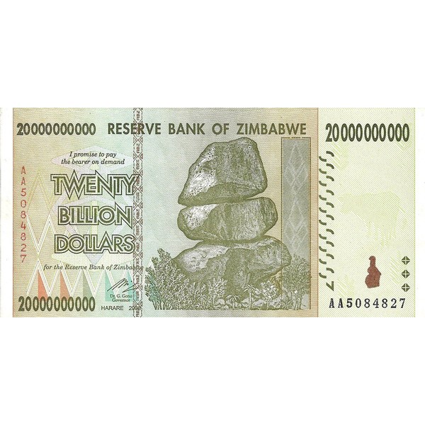 Zimbabwe 20 Billion Dollar Banknote 2008 P 86