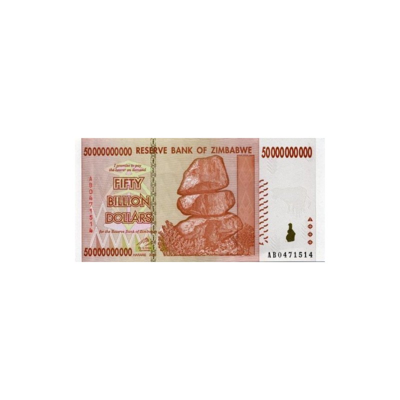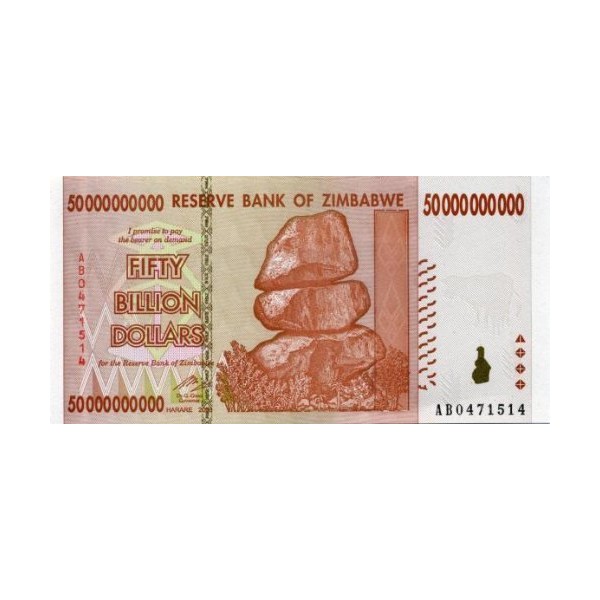 Zimbabwe 50 Billion Dollar Banknote Bill Money Inflation Record Currency Note