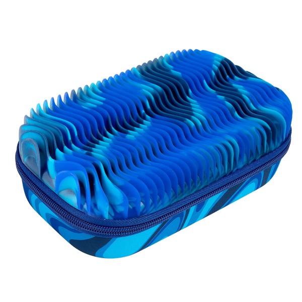 ZIPIT Wavy Pencil Case for Boys, Silicone Sensory Fidget Box Case for School, Large Capacity Stationery Organizer Box, Blue