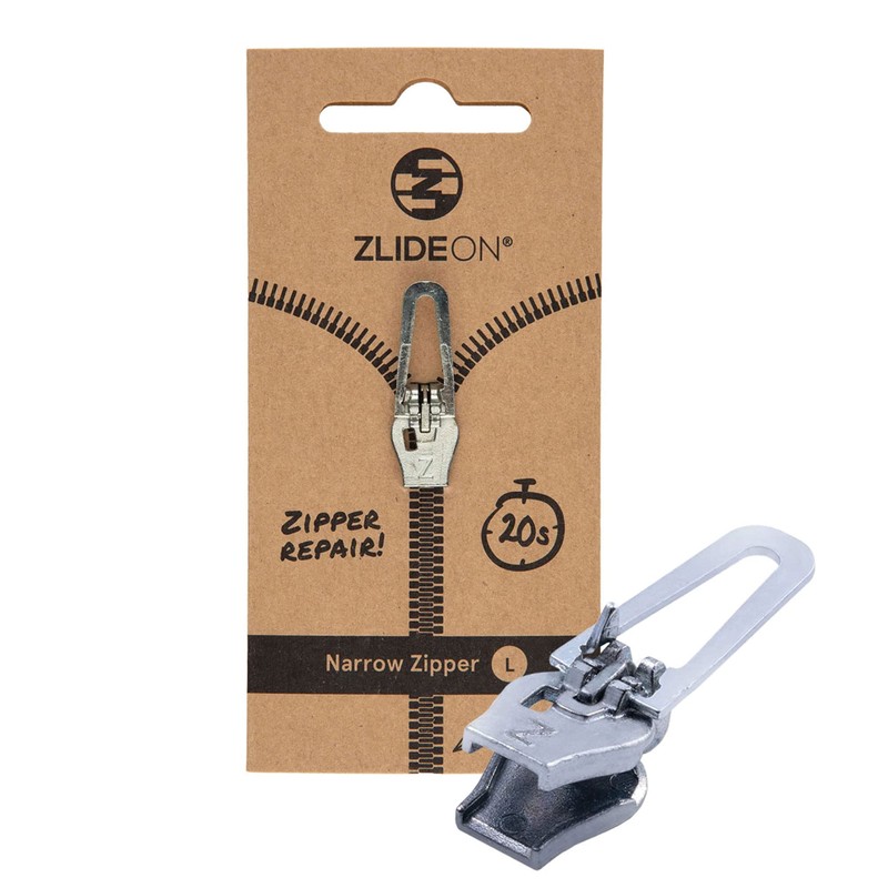 ZlideOn Zipper Pull Replacement - 1pcs, Silver, Narrow (L) - Instant Zipper Replacement Slider