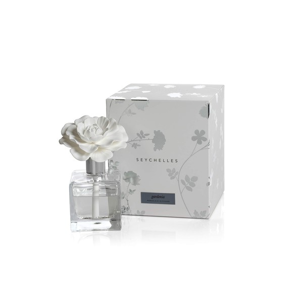 Zodax Seychelles Porcelain Scented Diffuser Square Bottle 3.5" x 3.5" x 6" Gardinia