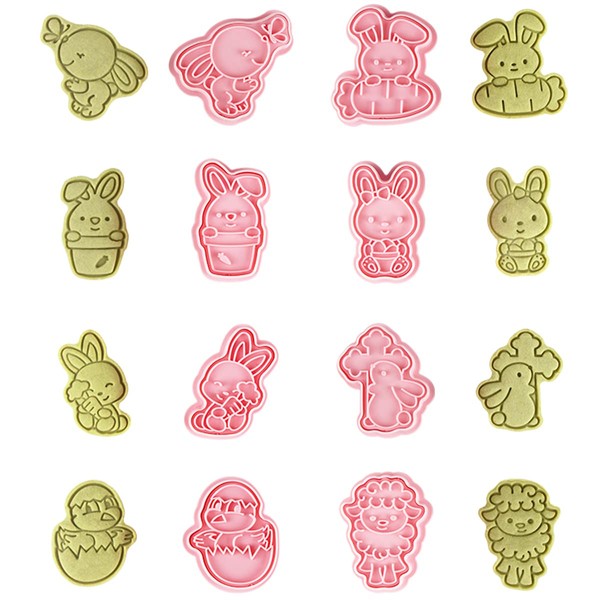 - Packaging design: the 3D Easter cookie mould set includes 8 different Easter cookie cutters, including rabbits, chickens and sheep. The cute cartoon design inspires children and promotes creativity when baking DIY biscuits or desserts. Perfect for Easter bunny cookie cutters and 3D Easter cookie cutters.