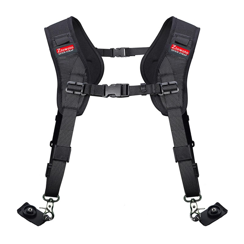 ztowoto Double Shoulder Camera Strap Harness Quick Release Adjustable Dual Camera Tether Strap for DSLR SLR Camera (focus)