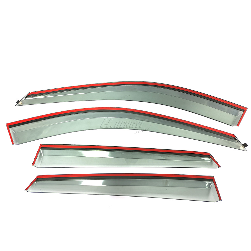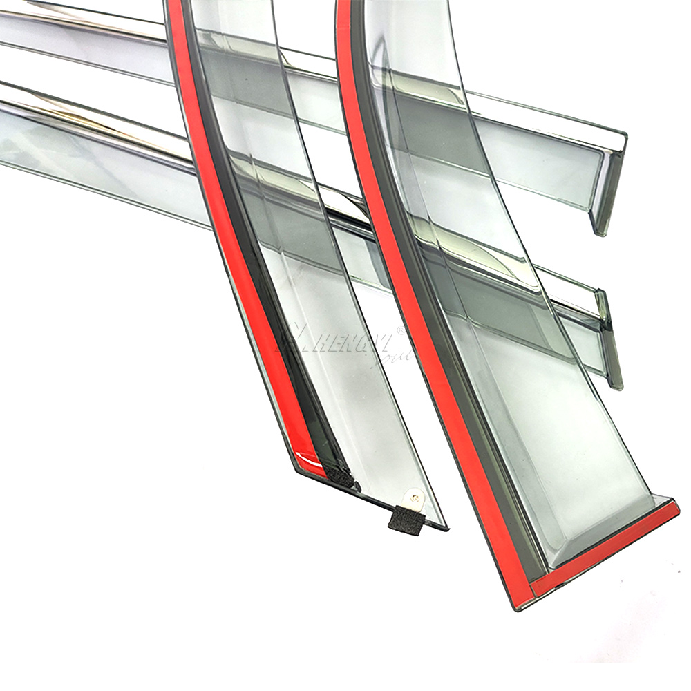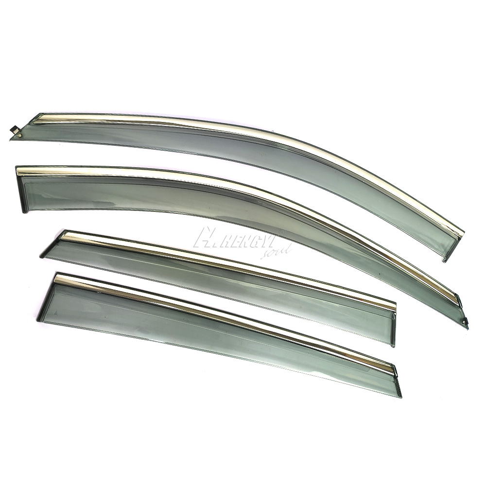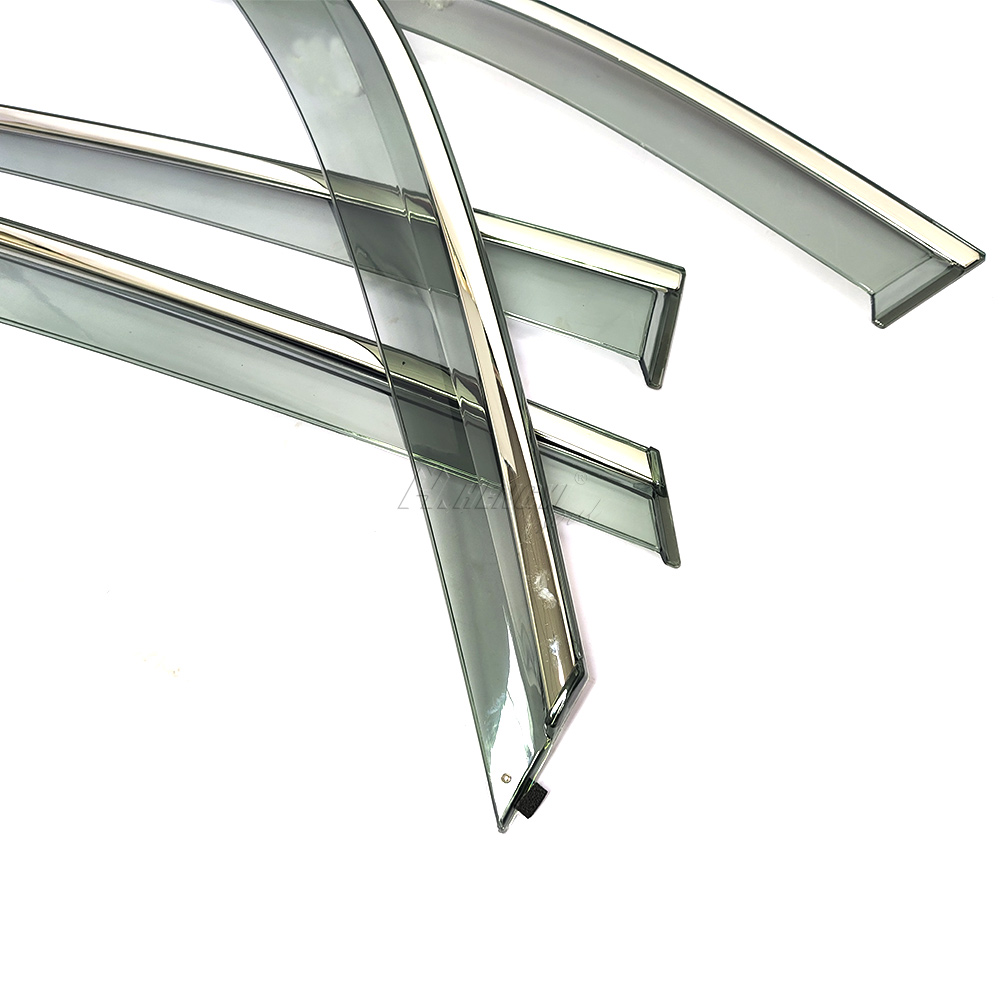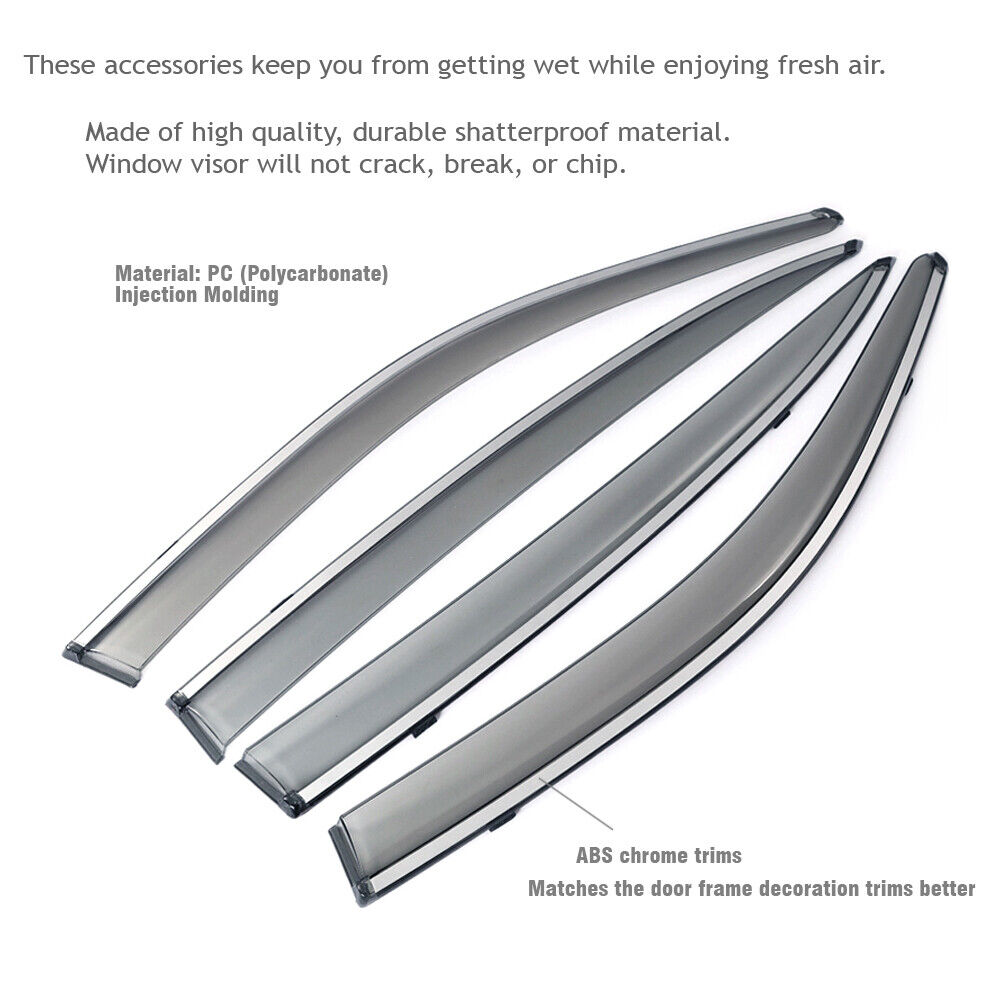 POLYCARBONATE (PC Transparent Material) Tape-on Smoke Tinted With Chrome Trim Wind Deflector, Rain Guard, Window Visor, Vent Deflecto