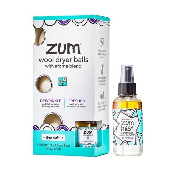 Zum Wool Dryer Ball Kit and Room & Body Spray Bundle - Sea Salt